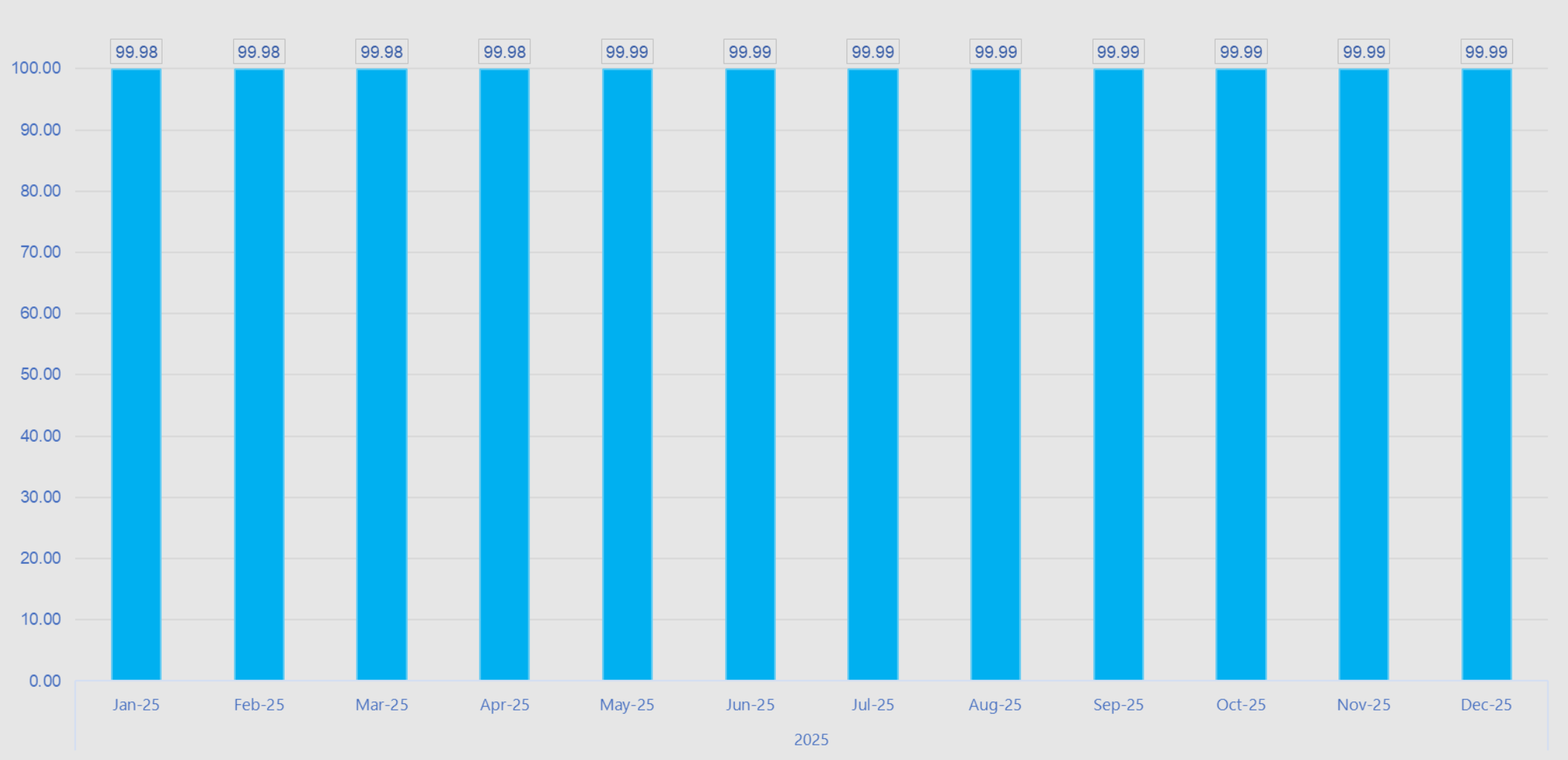 The graph below depicts the uptime history for Jedox for the previous 12 months.