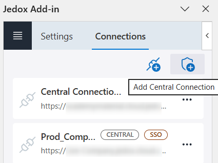 Jedox administrators can create a central connection via Excel's connection manager. They will be required to specify the server URL, connection name, and authentication method.