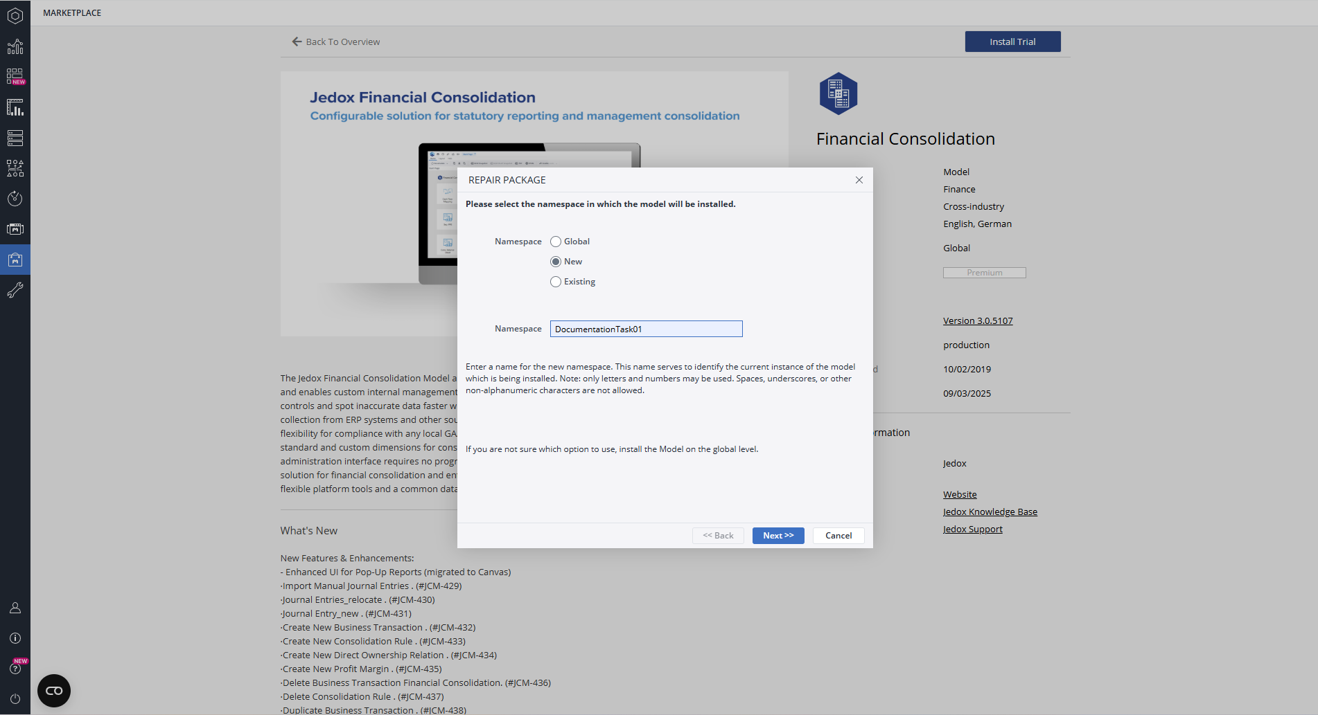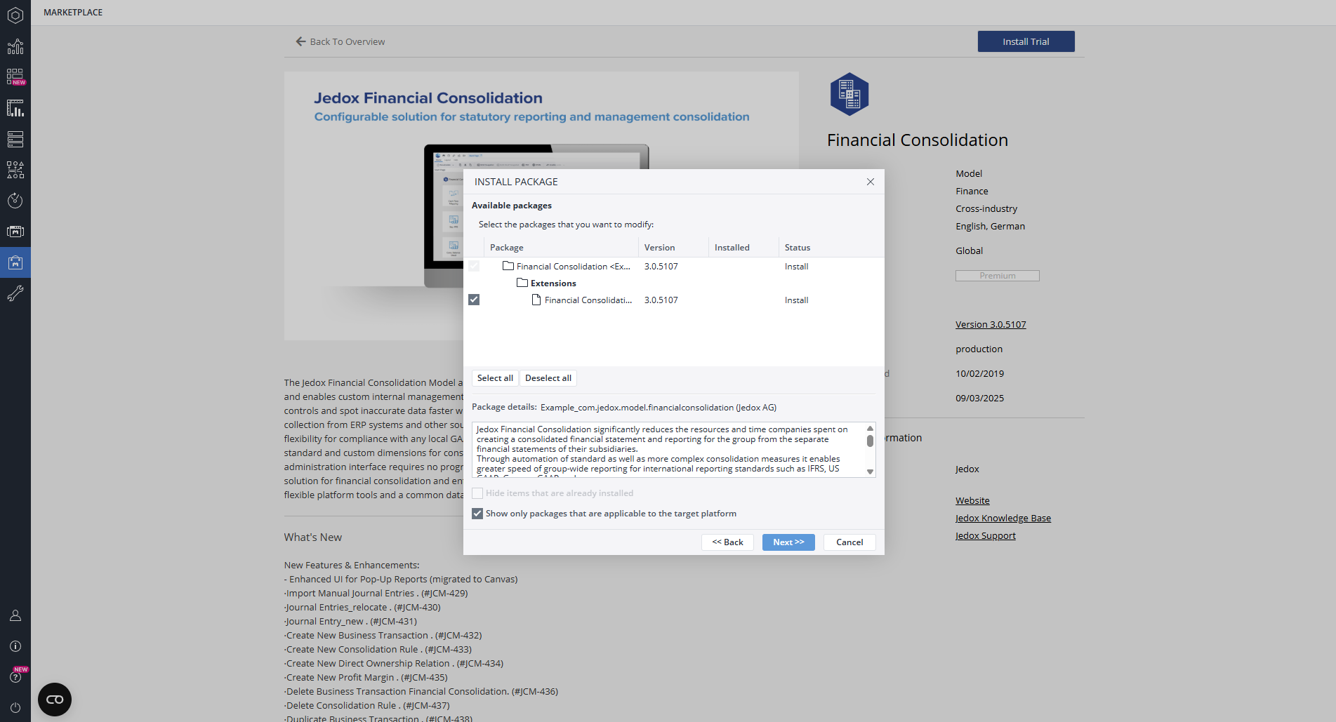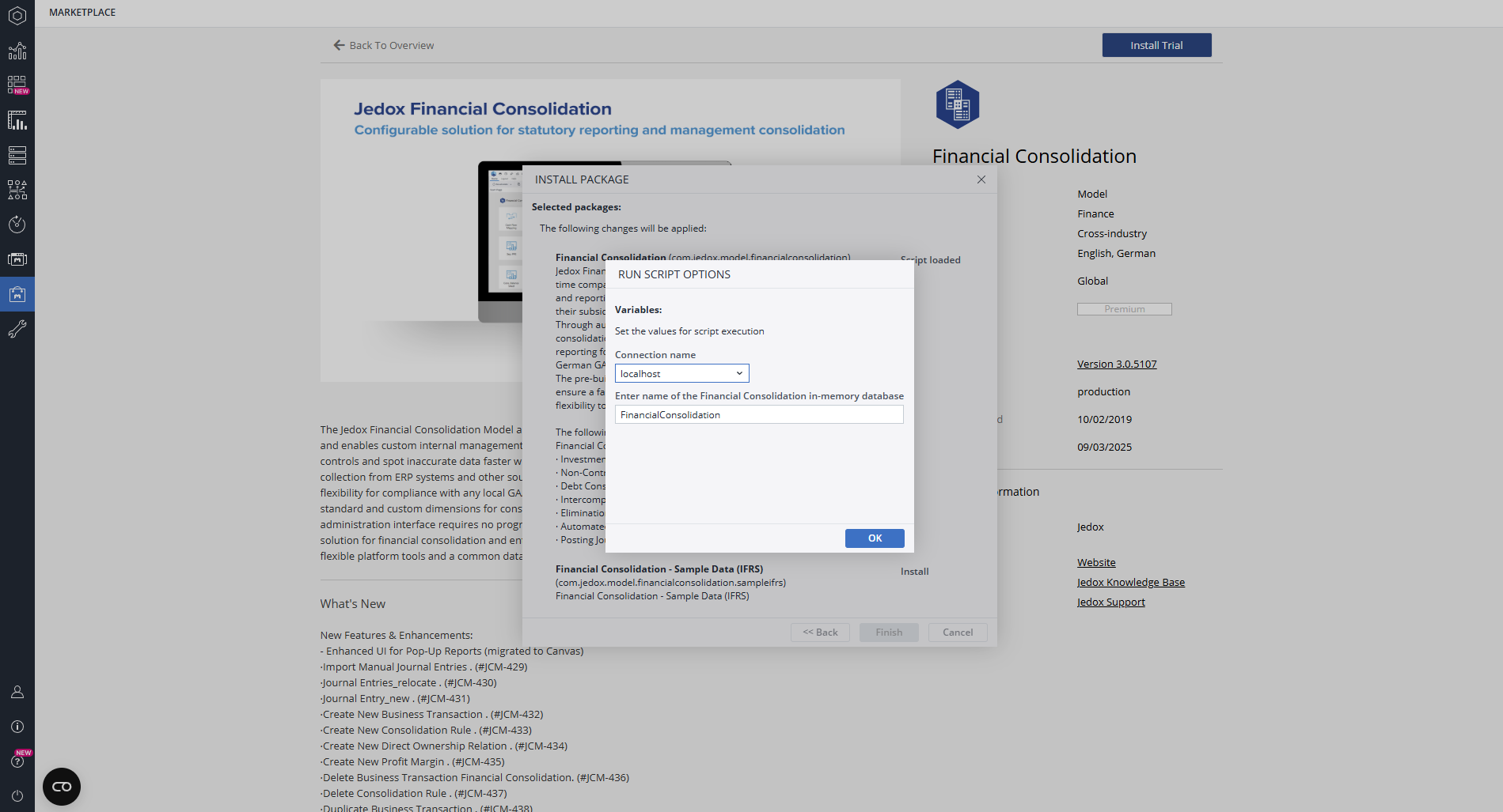 Installing the Financial Consolidation model from the Jedox Marketplace