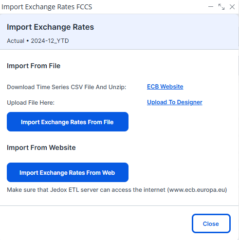 When this button is pressed, Jedox triggers an automated job that fetches the latest rates and writes them into the system. Once the job completes, a status banner is displayed at the top of the screen: