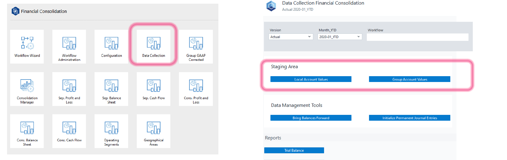 It serves as the starting point for collecting, validating, and mapping financial data from individual entities into the group structure. By standardizing data integration and mapping processes, the Staging Area helps ensure consistency and auditability throughout the consolidation process.