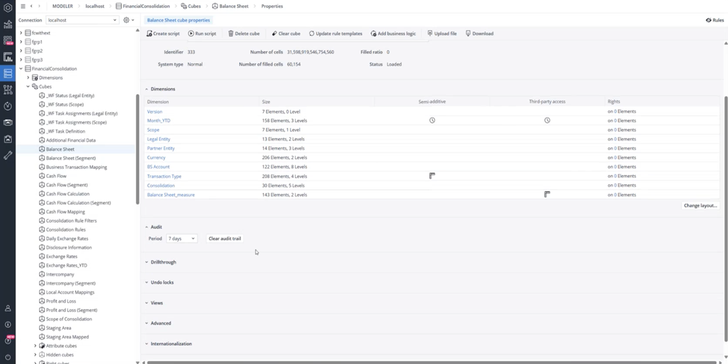 Jedox provides a full audit trail for Financial Consolidation data. Audit tracking can be enabled for individual cubes either directly in the database administration or through the Audit Manager.